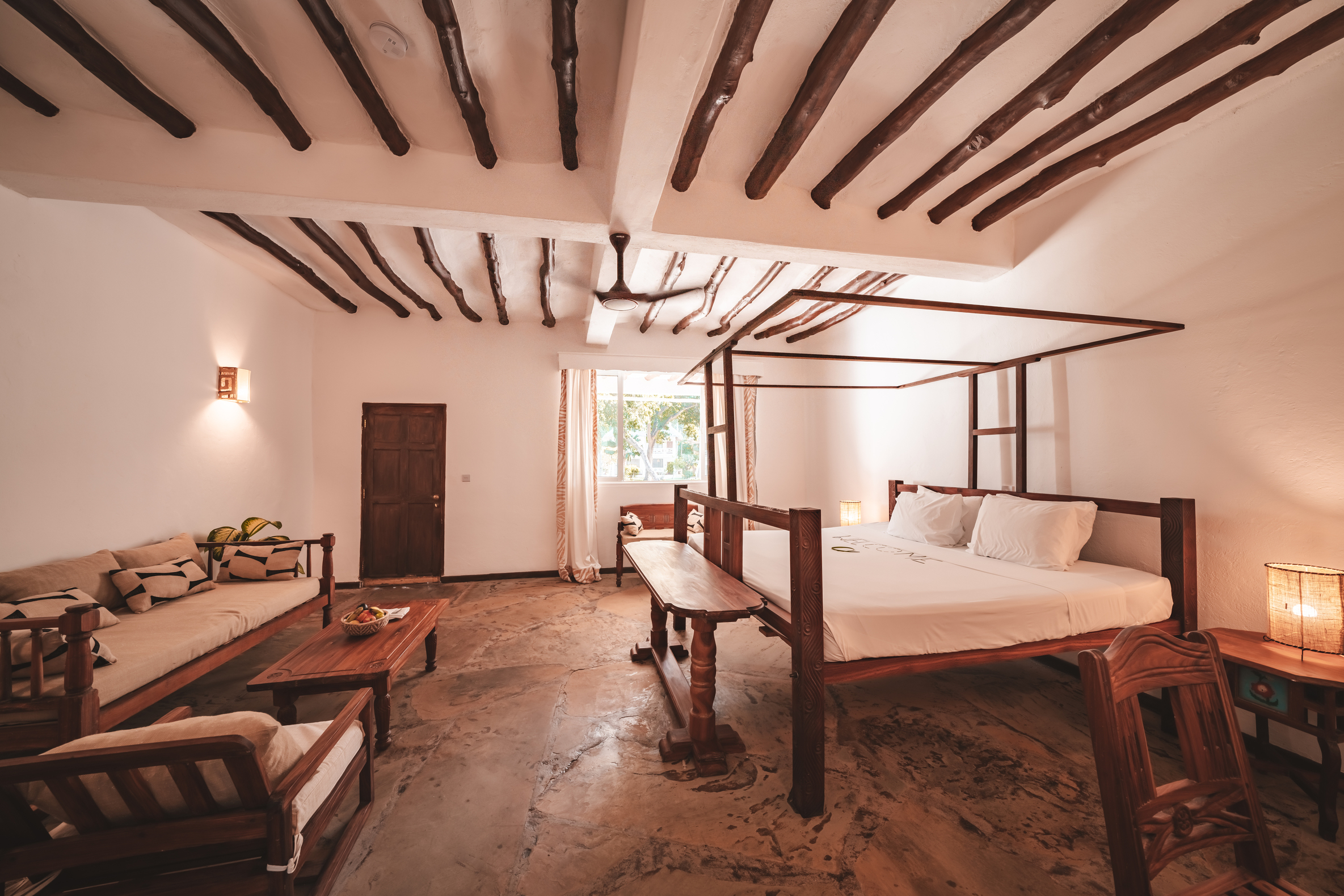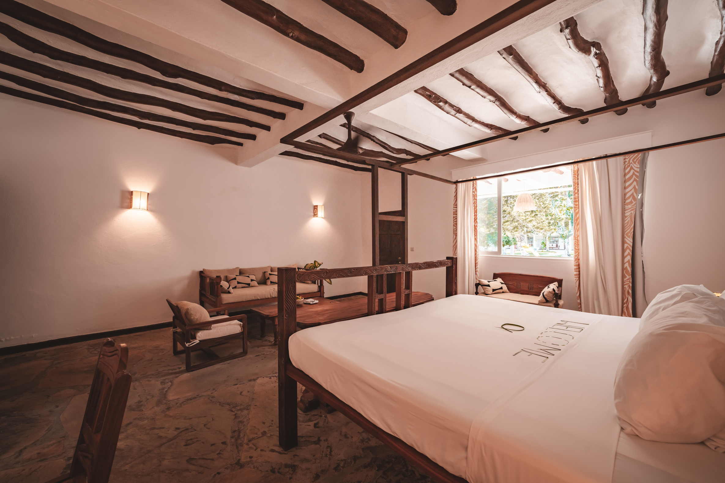 Masai Junior Suiten, die im Erdgeschoss eines halbrunden Gebäudes erbaut wurden. Die Zimmer verfügen über private und großzügige überdachte Terrassen. Diese exklusiven Suiten bieten den Gästen die Möglichkeit, ein Frühstück im Zimmer zu bestellen.